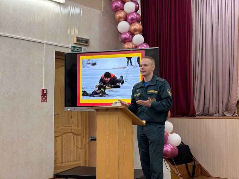 Кроме того, работник МЧС уделил внимание другим угрозам, таким как гололедица и тонкий лед. Учащиеся узнали, как правильно оценивать безопасность льда, чтобы избежать несчастных случаев во время зимних каникул.