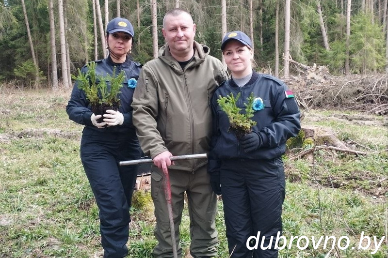 На территории Дубровенского лесничества участники акции высадили несколько сотен саженцев елей.