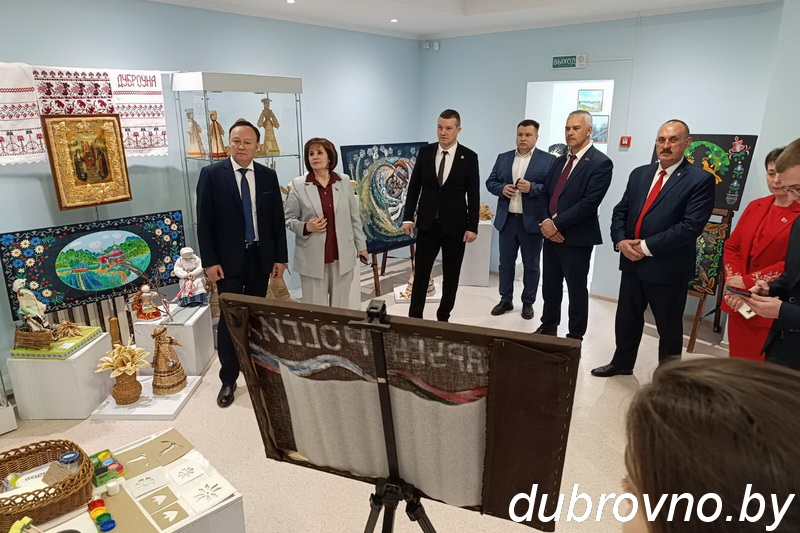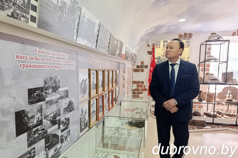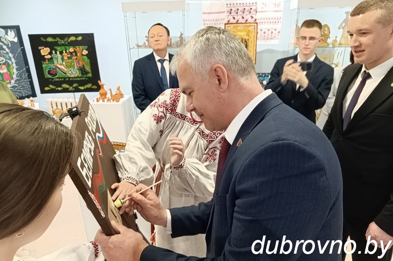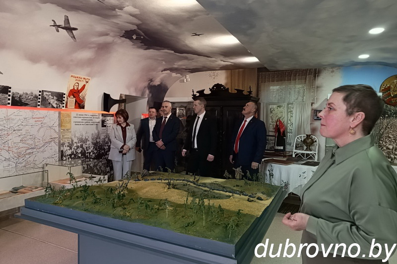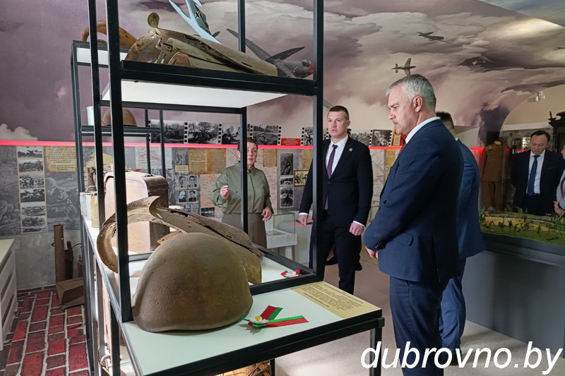 В Дубровенском историко-краеведческом музее для гостей был организован мастер-класс по «Маляванке», глава муниципального образования «Краснинский муниципальный округ» Смоленской области Максим Мищенко и председатель Дубровенского районного исполнительного комитета Олег Макаревич приняли участие в совместной творческой работе «Беларусь и Россия за мир», в зале истории Великой Отечественной войны вместе вспомнили, какой ценой была завоевана наша общая Победа.