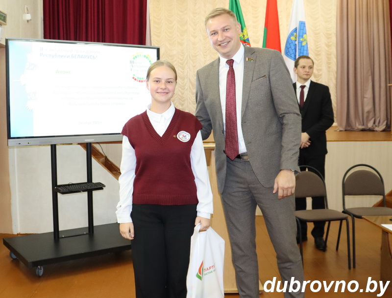 — Она начинается с маленьких дел. Нужно не просто наблюдать, а действовать во благо страны, — пояснил Владимир Геннадьевич. — Государство многое делает для нас, но и ответственность каждого высока. От вас в скором времени будет зависеть место Беларуси в мире, — уверен депутат.