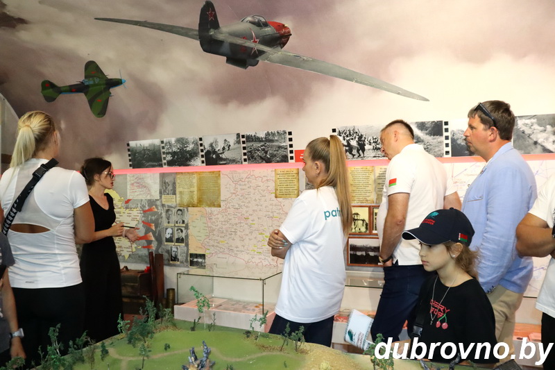 80 лет прошло со дня окончания одной из самых кровопролитный войн на земле. Победа советского народа в Великой Отечественной войне далась нелегко. Глубокой болью каждой белорусской семьи она и сегодня в сердцах наших соотечественников. Чтить память о тех, благодаря кому мы живем и строим планы на будущее — наш гражданский и национальный долг. Не случайно в программе фестиваля мероприятия, приуроченные юбилею Великой Победы. Так, участники автопробега побывали в Дубровенском историко-краеведческом музее, где познакомились с уникальными экспозициями истории и быта Дубровенского района. Посетили экспозиционный зал «Дубровенщина в годы Великой Отечественной войны», где сотрудники музея рассказали о подвигах земляков и всех советских солдат на территории района.