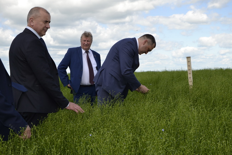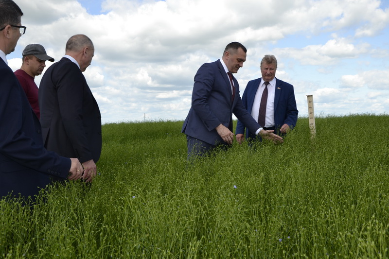 Председатель Дубровенского райисполкома Анатолий Лукашов привез председателя Витебского облисполкома Александра Субботина, его первого заместителя Сергея Левковича, а также помощника Президента-инспектора по Витебской области Владимира Юргевича на 100-гектарный семенной участок ОАО «Дубровенский льнозавод».