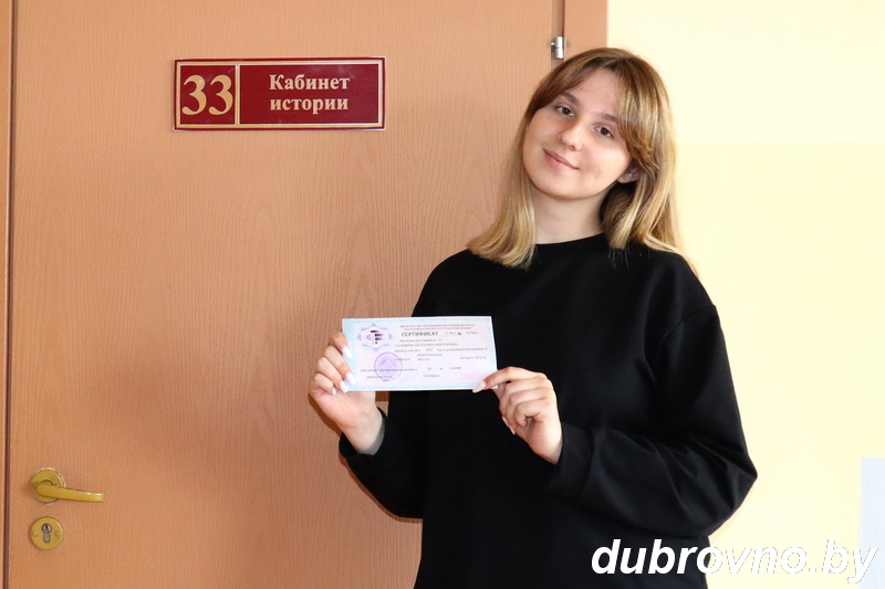 — Интерес к истории мне прививали с детства родители, потом моя первая учительница Светлана Михайлов на Храмцова. В шестом классе Елена Викторовна Крепочина так увлекла нас историей Беларуси, что я просто влюбилась в этот предмет. Стала участвовать в различных конкурсах, конференциях. Под руководством Александра Иосифовича Мальца проводила экскурсии в школьном музее, с исследовательскими работами и видеоролика ми о Дубровенщине мы не раз становились победителями областных и республиканских конкурсов. В 10 классе я точно определилась с профильными предметами: история Беларуси и обществоведение. Планирую поступать в БГУ на кафедру политологии юридического факультета. Я вижу, что в нашей стране существует запрос на действительно талантливую молодежь, которая горит новыми идеями продвижения Беларуси вперед. Надеюсь, что смогу внести свой вклад в развитие государства и общества.