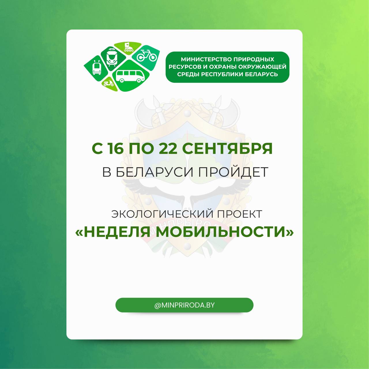 С 16 по 22 сентября в Беларуси пройдет Неделя мобильности, которая завершится экологической акцией "День без автомобиля! Беларусь за чистый воздух".