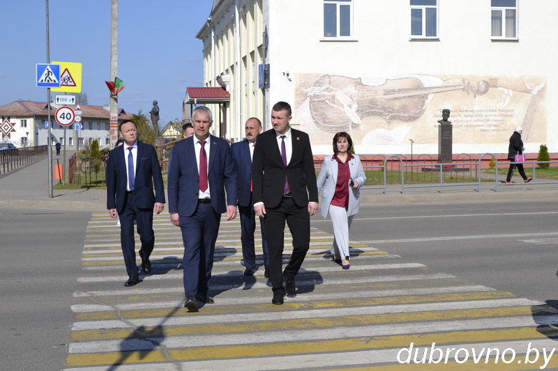 Затем посетили детскую школу искусств имени Фарида Яруллина. Общение членов делегации с руководством Дубровенского района было неформальным. Главы района делились планами по развитию своих регионов, рассказывали о развитии инфраструктуры, привлечении молодежи и поддержке ее инициатив. Так, посещение детской площадки не было в плане визита, но в Красном решается вопрос о строительстве такого объекта, поэтому краснинцы с интересом осмотрели расположение и оборудование площадки в Дубровно.