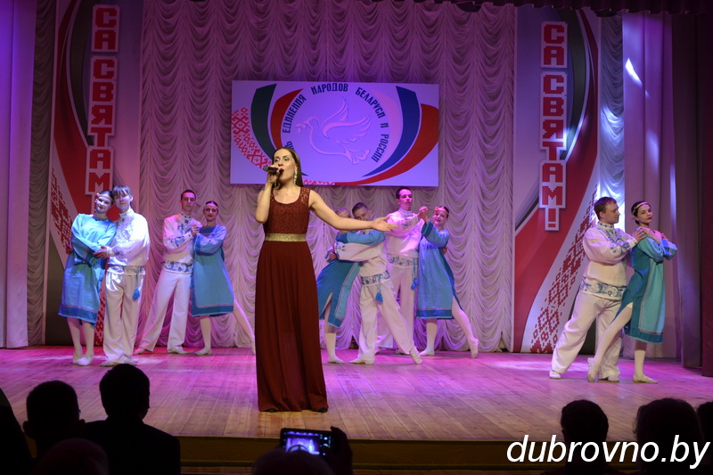 После возложения цветов к памятнику Анны Никандровой состоялось торжественное собрание общественности и праздничный концерт «Беларусь и Россия — мы единый народ».