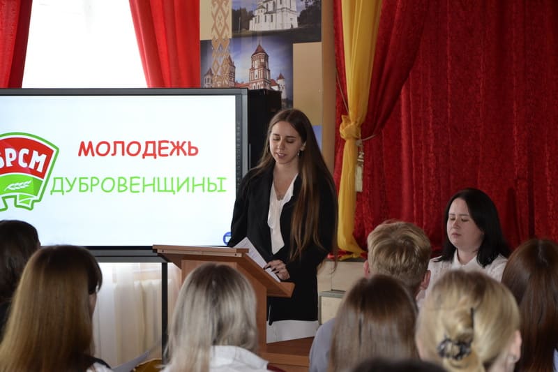 С докладом о деятельности организации ОО «БРСМ» в 2021-2025 гг. и задачах на следующую пятилетку выступила первый секретарь Дубровенского РК ОО «БРСМ» Анна Дудовцова. Опытом организации деятельности первички БРСМ «ТЦСОН» поделилась Анна Белкина.