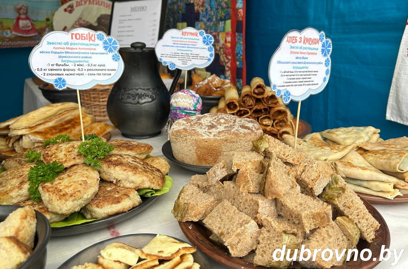 Например, лупуны — пирожки с различной начинкой (фаршем, яйцом, квашеной капустой) из вареной картошки, которые запекаются в печи. Они считались любимым лакомством сельчан, да и в наши дни такие угощения нередко появляются на столе дубровенских хозяек.
