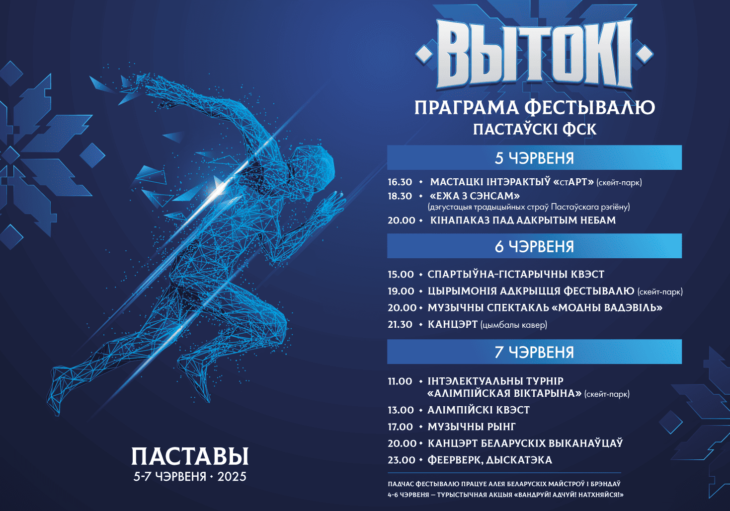 В 2025 году спортивно-культурный фестиваль «Вытокi» с 5 по 7 июня примет один из самых красивых городов Витебщины – Поставы.