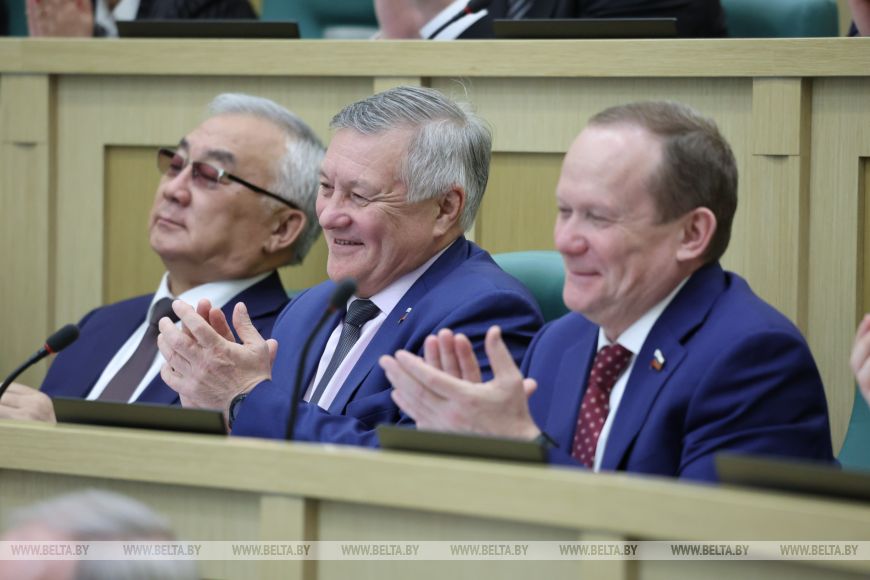 "Позвольте мне от имени всех сенаторов Российской Федерации поблагодарить вас за оказанную нам честь и за то, что вы нашли время посетить Совет Федерации, за ваше яркое, блистательное выступление, которое буквально было пронизано созиданием, открытостью и настоящей белорусско-российской братской дружбой, - обратилась в свою очередь к главе государства Валентина Матвиенко. - В том, что мы добились таких масштабных результатов взаимовыгодного стратегического партнерства, в том, что мы так уверенно движемся в создании союзного государства - в этом ключевая роль и ключевая заслуга Президента Российской Федерации Владимира Владимировича Путина и ваша личная, дорогой, уважаемый Александр Григорьевич. Именно вы стояли у истоков Союзного государства".