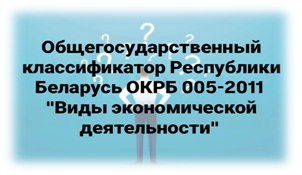 В ЕГР сведения об основном виде экономической деятельности кодируются в соответствии с общегосударственным классификатором Республики Беларусь ОКРБ 005-2011 «Виды экономической деятельности», утвержденным постановлением Государственного комитета по стандартизации Республики Беларусь от 5 декабря 2011 г. № 85.